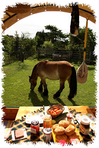 Ihr Wagen bietet Schlafmöglichkeit für 3 Personen, für Sie so gemütlich wie nur möglich und für das Pferd nur so schwer wie nötig. Im hinteren Teil können Tisch und Bänke schnell zu einem großen Bett umgebaut werden, im vorderen Teil befindet sich die Küchenzeile und gegenüber zwei weitere Schlafmöglichkeiten. Genügend Stauraum gibt es unter den Sitz- bzw. Schlafmöglichkeiten, in Regalen und unter dem Wagen. Die „Küche“ ist mit Kühlschrank, Gasherd, Spüle, Töpfen, Pfannen, diversen Küchenutensilien, Geschirr und Besteck ausgestattet.